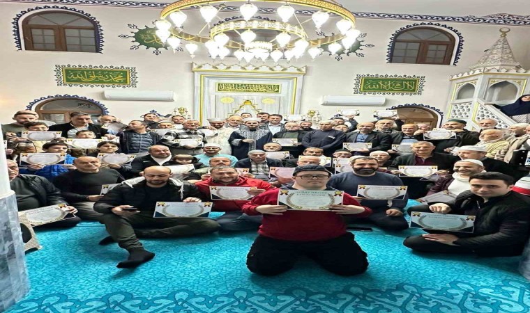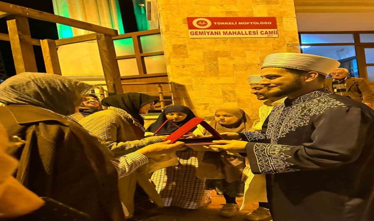 Hatimle teravih namazı kıldıran din görevlilerine plaket takdim edilmesiyle devam eden programda, Ramazan ayı boyunca düzenli ve sabit bir şekilde kendilerini yalnız bırakmayıp camiye iştirak eden bütün erkek ve kadın cemaate katılım belgesi verildi.
