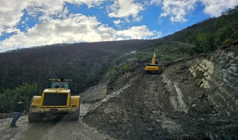 Sinop’un Türkeli ilçesine bağlı Gökçealan-Çatak köyleri grup yolunda sıcak asfalt öncesi yol tahkimat, yol genişletme ve istinat duvarı yapım çalışmaları sürüyor.