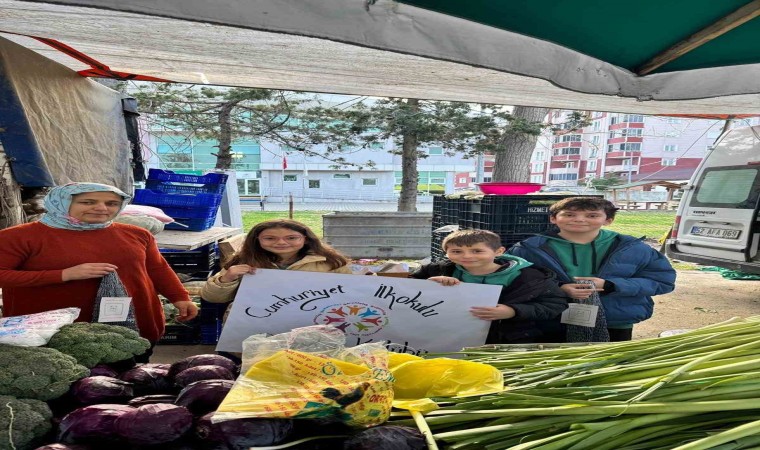 Sinop’un Türkeli ilçesinde Cumhuriyet İlkokulu, "Çevreme Duyarlıyım, Değerlerime Sahip Çıkıyorum Projesi" kapsamında Türkeli Pazar Yerinde vatandaşlara alışveriş filesi dağıtarak sıfır atık bilincini artırmayı hedefledi.