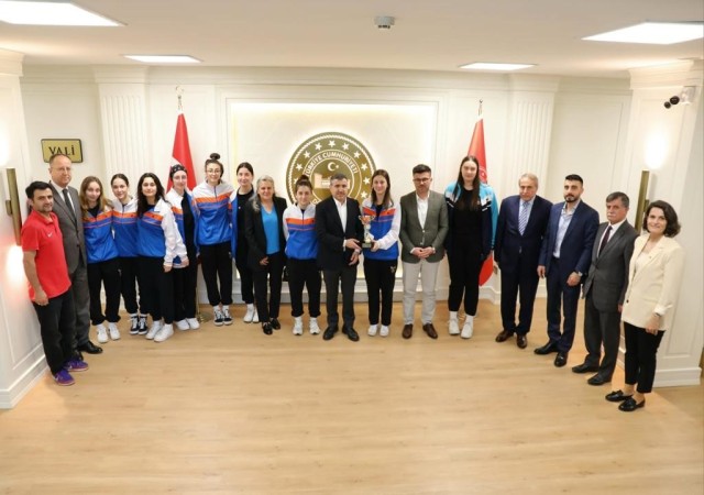 DÜZCE (İHA) - Türkiye liseler arası basketbol turnuvasında üçüncü olan Kültür Koleji Kız Basketbol Takımı sporcuları ve yöneticileri, Düzce Valisi Cevdet Atay tarafından ağırlanarak onurlandırıldı.