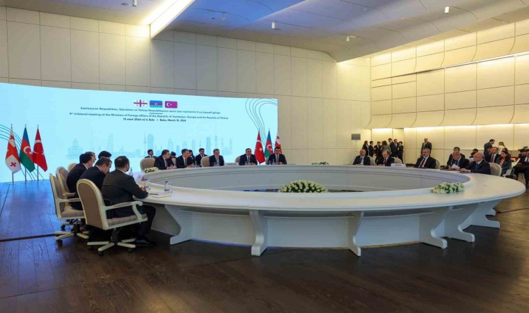Azerbaycan, Türkiye ve Gürcistan Dışişleri Bakanlarının katılımıyla düzenlenen Üçlü Dışişleri Bakanları 9. Toplantısı Bakü’de başladı. Dışişleri Bakanı Hakan Fidan, Azerbaycan Dışişleri Bakanı Ceyhun Bayramov ve Gürcistan Dışişleri Bakanı İlia Darçiaşvili üçlü toplantı kapsamında bir araya geldi. Gazetecilerin görüntü almasının ardından basına kapalı olarak devam eden toplantıda, üçlü iş birliğinde kaydedilen ilerlemenin değerlendirilmesi ve son dönemde yaşanan bölgesel ve küresel gelişmelerin ele alınacağı belirtildi. Üçlü toplantının ardından basın açıklaması gerçekleştirilecek.