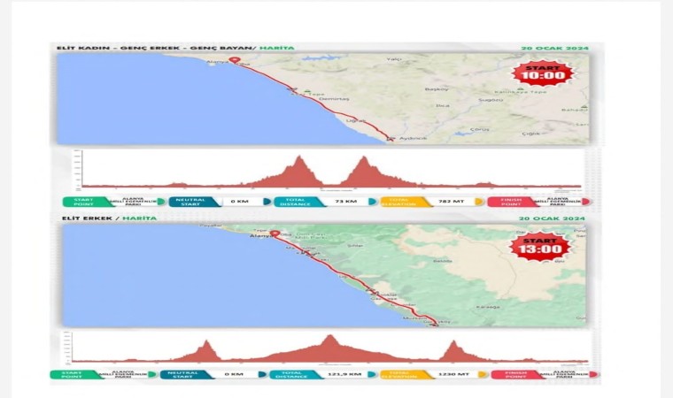 Türkiye Bisiklet Kupası 1. Etapta sporcular büyük erkek, büyük kadın, genç erkek, genç kadın kategorilerinde yarışacak. 20 Ocak Cumartesi günü yol yarışları Milli Egemenlik Stadyumu önünden başlayacak, Tomur Kavşağı - D-400 Karayolu üzeri Mahmutlar - Demirtaş - Gazipaşa (yeni yol) çift taraflı olarak kontrollü şekilde saat 09.00 ile 17.00 arasında yollar trafiğe kapalı olacak.
