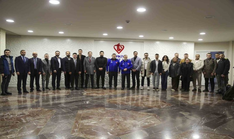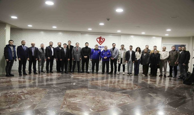 Turan, daha sonra basın mensupları ile hatıra fotoğrafı çekindi.