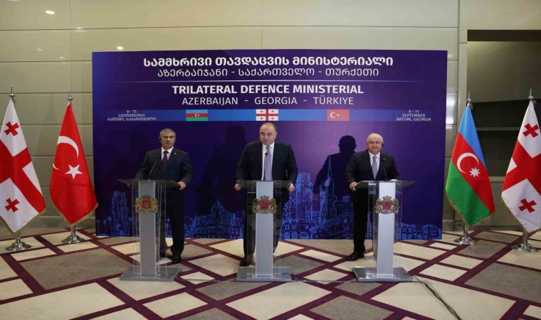Milli Savunma Bakanı Yaşar Güler’in Gürcistan’da katıldığı Türkiye-Azerbaycan-Gürcistan Üçlü Savunma Bakanları Toplantısı sona erdi. Batum şehrinde gerçekleştirilen ve Güler ile Gürcistan Savunma Bakanı İrakli Çikovani ve Azerbaycan Savunma Bakanı Orgeneral Zakir Hasanov katıldığı toplantının ardından Üçlü Mutabakat Metni imzalandı. İmza törenin ardından basın toplantısı düzenleyen Bakan Güler, “Türkiye Cumhuriyeti, Azerbaycan ve Gürcistan Savunma Bakanları olarak bugün Batum’da Üçlü Savunma Bakanları 11’inci Toplantısı kapsamında bir araya gelmiş bulunuyoruz. Öncelikle misafirperverliği kapsamında değerli meslektaşım İrakli Çikovani’ye teşekkürlerimi sunuyorum. Bu vesileyle Sayın Bakanların şahsında tüm Gürcistanlı ve Azerbaycanlı kardeşlerimize Sayın Cumhurbaşkanımızın selam ve sevgilerini de iletiyorum” dedi.