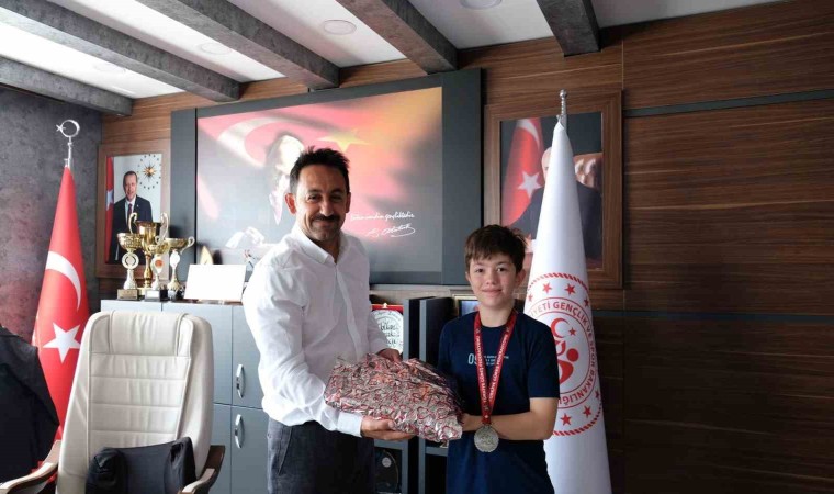 Türkiye Güreş Federasyonu tarafından Şanlıurfa’da düzenlenen 11-13 yaş Grekoromen Güreş Türkiye Şampiyonasında 44 kg’da Türkiye 2’ncisi olan Ulubey Sarıçiçek’e Gençlik ve Spor İl Müdürü Volkan Burak Mumcu hediye taktim etti.