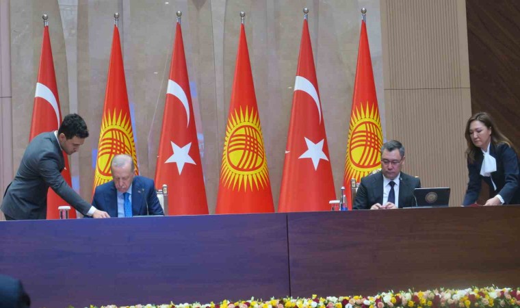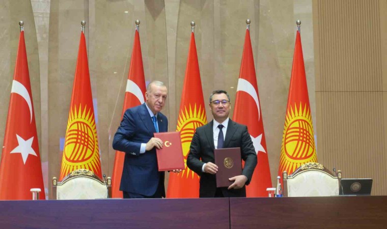 Cumhurbaşkanı Recep Tayyip Erdoğan’ın Kırgızistan temasları devam ediyor. Bişkek’teki Cumhurbaşkanlığı Sarayı’nda baş başa ve heyetler arası görüşmelerin ardından iki ülke arasında anlaşmaların imza töreni gerçekleştirildi. Törende, Cumhurbaşkanı Erdoğan ile Caparov, "Türkiye Cumhuriyeti ile Kırgız Cumhuriyeti Arasındaki Stratejik Ortaklık İlişkilerinin Kapsamlı Stratejik Ortaklık Düzeyine Çıkarılmasına İlişkin Ortak Bildiri"yi imzaladı.