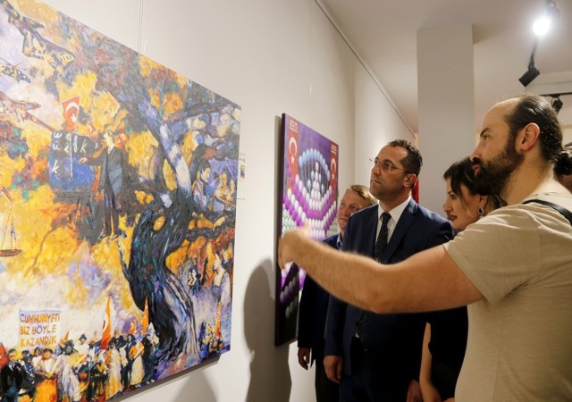 Konuşmaların ardından, Türkiye Cumhuriyeti'nin 100. yıl dönümünü anlatan resimlerin bulunduğu sergi, ziyaretçiler tarafından ilgiyle gezildi. Resim Sergisi, bir hafta boyunca Akçaabat Belediyesi Sergi Salonu'nda ziyarete açık kalacak.