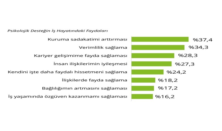 Araştırmanın bir başka dikkat çeken sonucu, her iki çalışandan birinin psikolojik sağlamlığının düşük olması. Buna karşılık bugüne kadar psikolojik destek almadığını belirtenlerin oranı ise yüzde 88 gibi yüksek düzeyde olduğu görüldü. Profesyonel yardıma başvuranların oranı ise, sadece yüzde 12’de kaldığı görüldü. Psikolojik destek almanın önündeki en önemli bariyerlerden biri ise, psikolojik desteğin rahatlıkla ulaşılamayacak kadar yüksek bütçeli olması. Diğeri ise damgalanma endişesi. Psikolojik destek ihtiyacının iş yerinde bilinmesi pek çok kişi tarafından damgalanma endişesi hissettiriyor; ardında da çalışma ortamında zayıf halka olarak görülme kaygısı yatıyor.