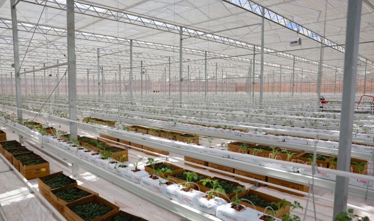 Sivas Belediyesi ve özel sektör iş birliği ile katı atık depolama sahasında 50 dönüm alan üzerine kurulan modern topraksız cam seraya ilk fideler dikildi.