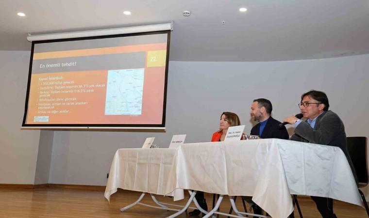Panele, Çevre Mühendisleri Odası İstanbul Şubesi’nden konuşmacı olarak katılan Doç. Dr. Hakan Dulkadiroğlu, Türkiye’de ve İstanbul’da su kaynaklarının korunması ve su kıtlığının önlenmesiyle ilgili önemli veriler paylaştı. Suyun israf edilmeden kullanılmasının sağlanabilmesi için ilk önce toplumun bilinçlenmesinin gerektiğini ifade eden Doç. Dr. Hakan Dulkadiroğlu, su tüketimiyle ilgili herkese büyük görevler düştüğünü belirtti. İstanbul’da 15 milyondan fazla nüfusa su hizmeti verildiğini ifade eden Doç. Dr. Hakan Dulkadiroğlu, bu kapsamda tatlı su kullanımının sürdürülebilir olmadığını vurgulayarak, su tasarrufunun önemine dair bilgilendirici açıklamalarda bulundu.