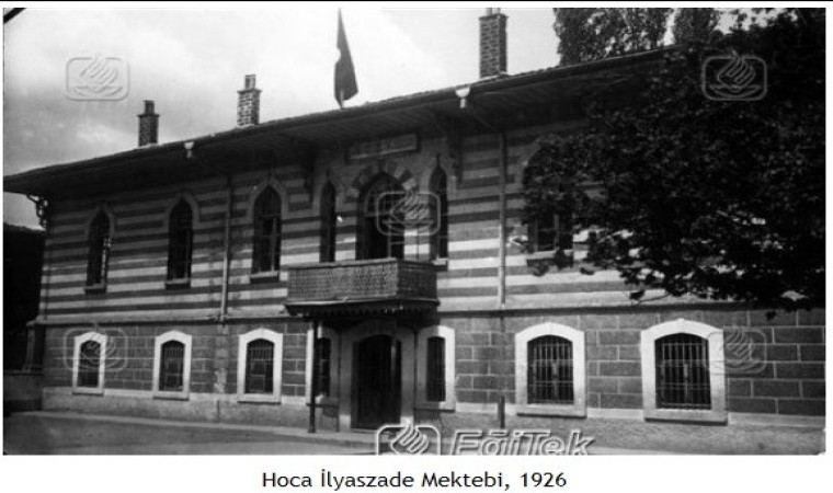 1855 yılında depremde tamamen yıkılsa da 1910’da yeniden inşa edilen, milli mücadele döneminde ise bu kez Yunan askerlerine karargah olan Hoca İlyas Ortaokulu’nun yıkılmadan ayakta kaldığını kaydeden Bozali, “Aynı mekanda eğitimine 1468’den beri devam eden bir kurum. Şu an görülen bina okulumuzun üçüncü binası. Daha önceki binalar da deprem ve benzeri sebeplerden dolayı yıkılmış. Bu bahçemizin içerisinde mevcut kalıntıları da vardır. Ayrıca büyük afetler haricinde eğitimin kesintiye uğramadığı bir okul burası. 556 yıllık bir eğitim geçmişine sahip olan bir kurum. 1855 yılındaki depremde tamamen yıkıldığını biliyoruz. 1910 yılında Vakıflar Müdürlüğü tarafından günümüzdeki bina inşa edilmiş. Daha sonra bu bina Bursa’nın işgalini de görmüş. Hatta kitabemizin üzerinde enteresan bir ibare var, ‘Müdafa-i Milliye Hoca İlyaszade Vakıf Mektebi’ yani Milli Mücadele mektebi. Milli mücadelede bu okulun ilk müdürlerinden Ömer Fevzi Güven Yunan işgalinde milli mücadeleye destek verdiği için Malta adasına sürgüne gönderilen kişilerden birisi. Ayrıca Yunan işgali döneminde bu okul karargah olarak kullanılmış, hatta terk ederken de binaya bir hayli zarar vermişler. Bin 50 kuruşluk masrafla eski haline getirilebilmiş” dedi.