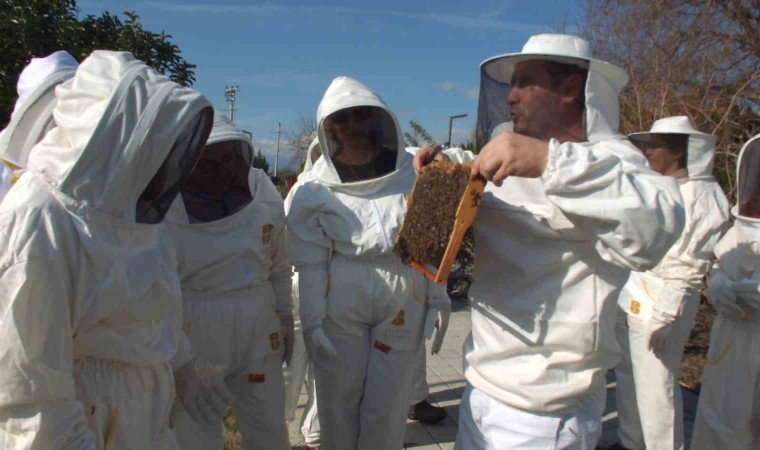 Balıkesir Büyükşehir Belediyesine ait Balıkesir Çiftçi Eğitim Merkezinde (BAÇEM) düzenlenen iki haftalık kursa, doktor, mühendis, avukat öğretmen ve akademisyenlere kadar değişik meslek guruplarından 33’ü kadın 60 kişi katıldı. Salonda uzmanlardan nazari dersler alan kursiyerler, kovanlarda tatbikat yaptı. Kursa katılan vatandaşlar mutluluklarını dile getirdi. Mersinden gelen yoğa eğitmeni Zeynep Eryılmaz; ”Mersinden geldim. Arıcılık kursuna geldim. İnşallah, daha sonrasında da kovan bakımı ve bal üretimi konusunda, arıların devamlılığı konusunda ve apiterapı gibi konularda tedavi edici özelliklerinden istifade edebilmek için çalışmalara devam etmeye niyetim var” dedi. Veteriner Hekim Uğur Tarhal da, “Türkiye’nin değişik yörelerinden arıcılığa meraklı arkadaşlarımız, her meslekten ve kurumdan geldiler. Güzel bir eğitim dönemi geçiriyoruz. Biraz önce uygulamalı olarak arı kovanlarında yaptık. Toplam 2 hafta devam edecek eğitim arıcılığı daha iyi yapacak” diye konuştu. Kurs eğitmeni Hakan Eser ise, “Kursumuzun bu gün uygulamasını gerçekleştirdik. Arıcılık kursumuz Burhaniye’de Büyükşehir Belediyesinde ilk defa düzenlendi. Düzenlenen kursumuza çoğu il dışından olmak üzere katılım isteği fazlaydı ve çeşitli İllerden katılım sağladık” dedi. Ziraat Mühendisi Sinem Uğur da, “Edremit’ten geliyorum. Ziraat mühendisiyim Arıcılık çok geniş bir alan. Bende bilgi edinmek için geldim. Dedem arıcılık yapıyordu. Ama, o geleneksel yöntemlerle yapıyor. Bende biraz daha teknik bilgiler öğrenip onun işini devir almak istiyorum” dedi. Emekli kadın doğum uzmanı Dr. Fatma Zeydan Yıldız ise, “BAÇEM’in yine çok güzel bir kursundayız. Bütün arkadaşlara beraber arıcılık hakkında çok detaylı bilgiler öğrendik. Umarım bunları uygulayabiliriz” diye konuştu