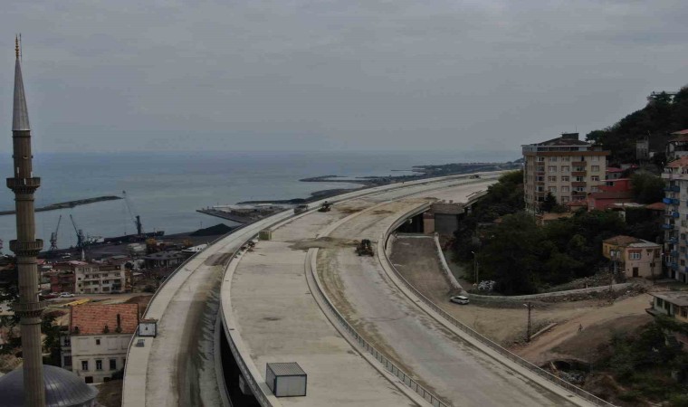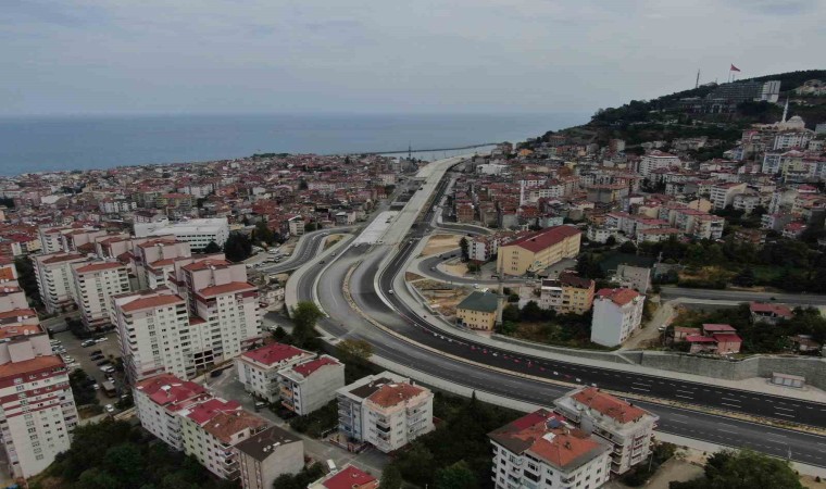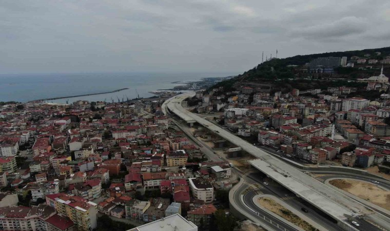 Trabzon’da devam eden en önemli karayolu projelerinden biri olan Kanuni Bulvarı Yolu’ndaki çalışmalar devam ederken, son hali havadan böyle görüntülendi.