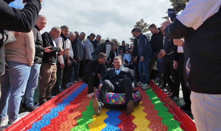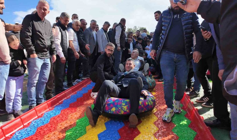 Renkli kaydırağın açılışı Müftü Sebahattin Turan’ın duası eşliğinde gerçekleştirildikten sonra MHP Kütahya Milletvekili Ahmet Erbaş ve Gediz Belediye Başkanı Necdet Akel’in kayak yapması renkli görüntülere sahne oldu.