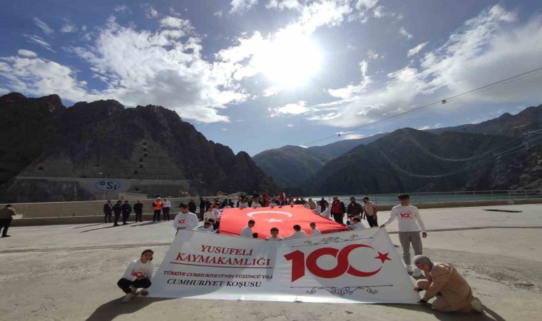 Cumhuriyetimizin 100.Yılını kutlama etkinlikleri kapsamında Yusufeli Milli Eğitim İlçe Müdürlüğü ile Yusufeli Gençlik ve Spor İlçe Müdürlüğü tarafından baraj gövdesinde düzenlenen koşuda genç atletler kıyasıya yarıştı.