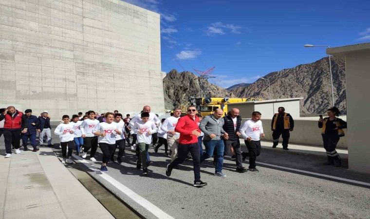 Artvin’de Çoruh Nehri üzerinde inşa edilen, kemer baraj sınıfında 275 metreyle Türkiye’nin birinci, dünyanın beşinci en yüksek barajı olan Yusufeli Barajı ve HES’te Cumhuriyetin 100. Yılı kapsamında koşu düzenlendi.