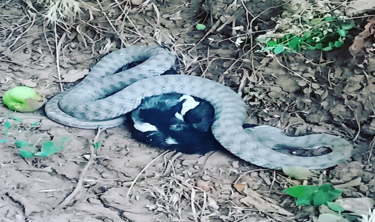 Tunceli’nin Nazimiye ilçesinde engerek yılanı yakaladığı bir kargayı yerken vatandaşlar tarafından görüntülendi.