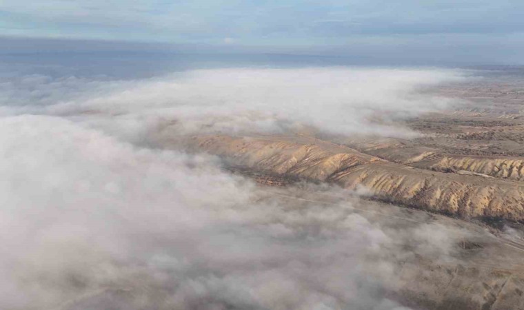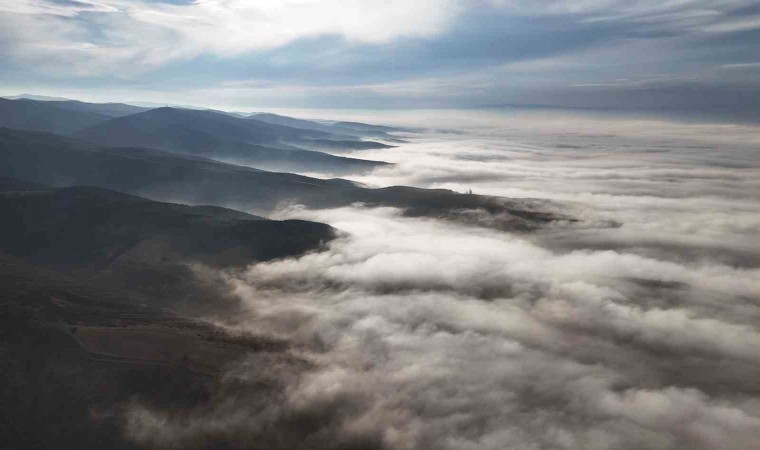 Kırıkkale’de dronla kaydedilen tarihi Çeşnigir Köprüsü ve Dinek Dağı, sis bulutları arasında adeta kartpostallık bir görsel şölen sundu.