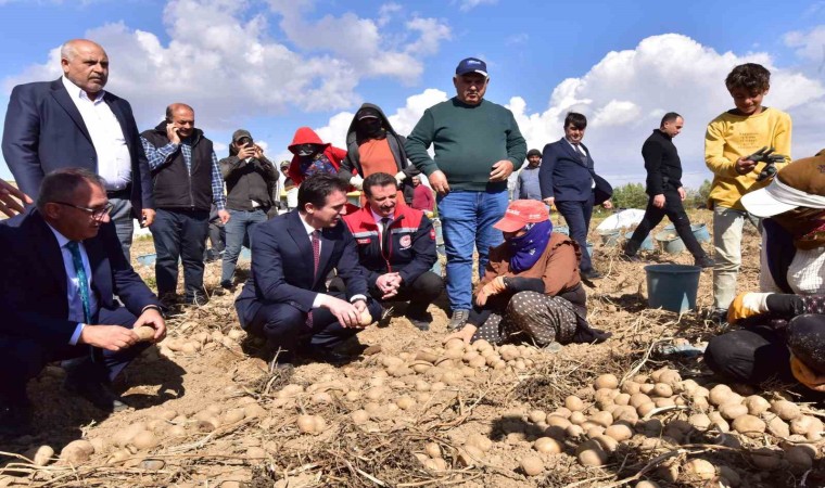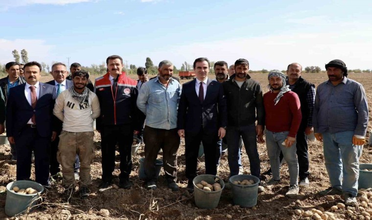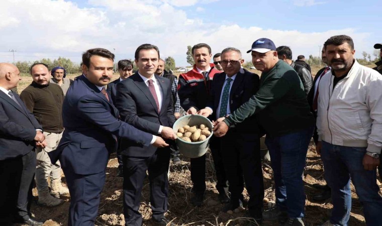 Ahlat’ta bu yıl 56 bin dekar alandan 200 bin ton yemeklik patates, hasadı bekleniyor. Bitlis Valisi Ahmet Karakaya Ahlat ilçesinde Halil Süleymanoğlu’nun patates tarlasını ziyaret ederek patates hasadına katıldı. Tarlada hasat yapan tarım işçileriyle sohbet edip kolaylıklar dileyen Vali Karakaya patates toplayarak hasada katıldı. Burada gazetecilere açıklamada bulunan Bitlis Valisi Ahmet Karakaya, “Patates bütün hanelerde en fazla tüketilen ürünlerden başında geliyor. Bu yılda bereketli bir sezon. Bizde burada patates hasadına katılarak çiftçilerimizin telaşına ortak olmak istedik. Bu çalışmasını yerinde görmek istedik. Her zaman çiftimizin yanındayız. Tarım çok stratejik bir sektör. Tarım eğer yeterince yapılmazsa geri kalan alanlardaki başarılar eksik kalıyor. Dolayısıyla şehrimizde de ülkemiz de bütün sektörlerin destekleyicisi olan tarımın hayvancılığın yaygınlaşması için elimizden geleni yapıyoruz. Hükümetlerimizin bütün politikaları bu yönde. İnşallah hem tarımda hem teknolojide hem bilimde hem sanatta hem kültürde çok daha ileriye gidecek hamleler devletimiz tarafından hükümetlerimiz tarafından yapılıyor. Biz de Bitlis olarak buna ayak uyduracağız ve elimizden geldiğince şehrimizin gelişmesi kalkınması için bu çalışmalara destek vereceğiz” dedi. Ahlat ilçesinin bambaşka bir anlam taşıdığını ifade eden Vali Karakaya sözlerini şöyle sürdürdü, Şu an Ahlat’tayız. Ahlat bambaşka bir anlam taşıyor. Ahlat herkesin bildiği üzere Anadolu’daki ilk mührümüzün olduğu bir ilçe. bir kent. Eski tabiri ile Kubbet’ül İslam olarak bilinen bin yıl öncesinden beri ülkemizin göz bebeği olan bir kent. Burada bu faaliyetlerin yürütülmesi tabii ayrıca anlamlı. Yaklaşık 350 bin ton civarında bir üretimi var Ahlat’ın ve Bitlis’in. Bu çerçevede biz bunu da en iyi şekilde planlayarak üreticiden tüketiciye ulaştırmak için gayret sarf ediyoruz. Ben burada çalışan sevgili kardeşlerimize kolaylıklar diliyorum. İnşallah her sektörde olduğu gibi tarımda da daha güzel sonuçlar elde etmek için hep birlikte gayret sarf edeceğiz. Bugün burada kaymakamımızla, il tarım müdürümüzle, Ziraat Odası başkanımızla ve değerli arkadaşlarımızla birlikte bu güzel hasadı biz de yerinde görmeye geldik” dedi.