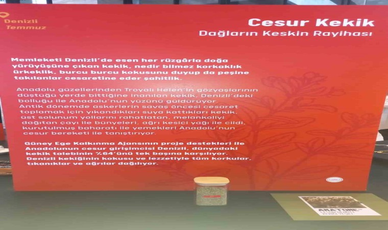 Anadolu’dakiler Sergisi’nde Güney Ege Bölgesi’nden Buldan Bezi, Yeşilyurt Bürümcük Dokuması, Muğla Tarhanası ve Denizli Top Tarhana, Muğla yöresine özgü Datça ve Belen kahveleri, Aydın İncir Çekirdeği Kahvesi, Aydın Bozdoğan yöresi Çam Fıstığı, Aydın’ın Köşk ilçesinde yetişen kestane ve kestane tatlısı, Söke Pamuğu, Denizli Kekiği, kekik suyu, nane ve lavanta yağı, Denizli coğrafyasında yetişmiş ürünlerin meyve pestili ve cips haline getirilmiş ürünleri yer aldı.