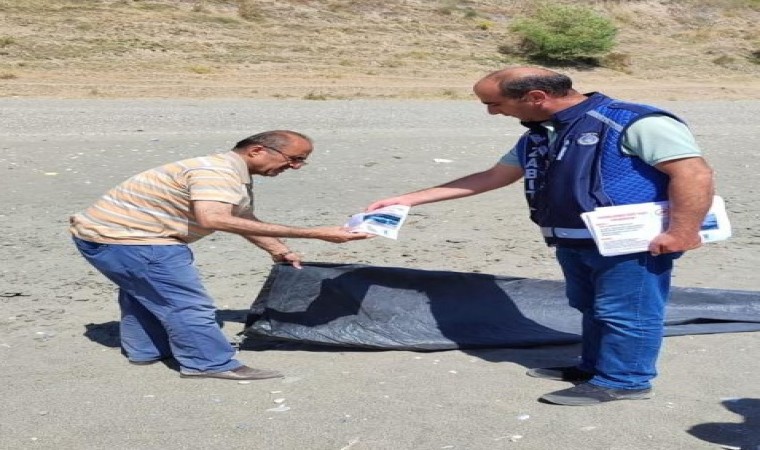 Van’ın Tuşba Belediyesi, jandarma ve polis ekipleri ile birlikte Van Gölü sahilinde piknik yapan vatandaşlara el broşürleri dağıtarak boğulmalara karşı uyarıyor.