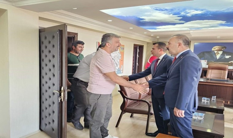 Çelenk sunma to¨reninin ardından Tutak İlçe kaymakamı Erkan Adıbelli ve Tutak Belediye başkanı Fevzi Sayan kaykamlık Makamında tebrikat töreninde tebrikleri kabul etti.