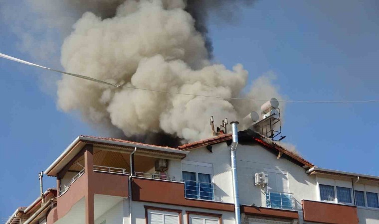 Çatıda gün ısı tamiratı sırasında kaynak yapıldığı esnada çıktığı iddia edilen yangında, çatı katında bulunan 2 daire büyük ölçüde zarar gördü.