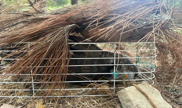 Mersin’de iğne yapraklı çam ağaçları arasında kafesli tuzağa takılan ve ölmek üzere olan nesli tükenme tehlikesi altındaki bayağı çakır kuşunu polis kurtardı.