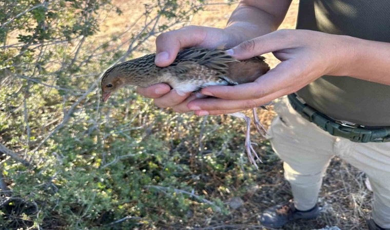 Mersin’de fileli tuzağa takılan ve ölmek üzere olan nesli tükenme tehlikesi altındaki kılavuz bıldırcınını polis kurtardı.