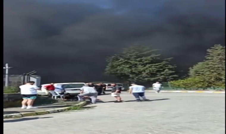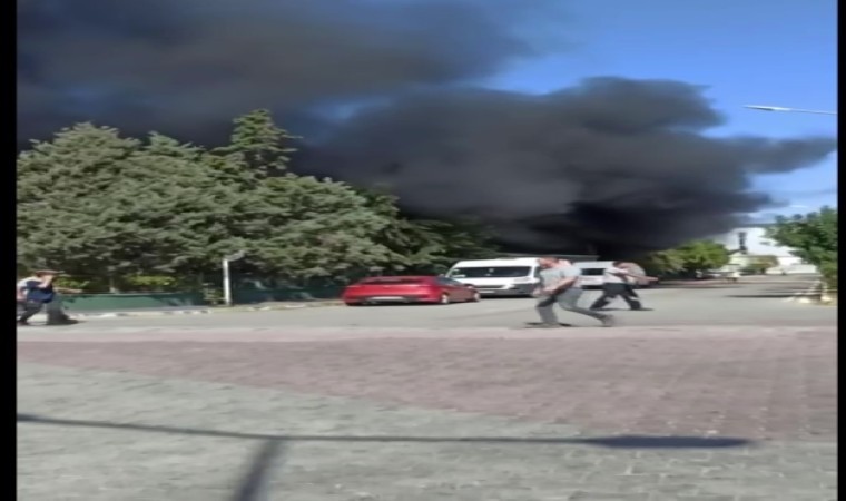 Yangın nedeniyle gökyüzüne dumanların yükseldiği anlar cep telefonu kamerasına yansıdı.