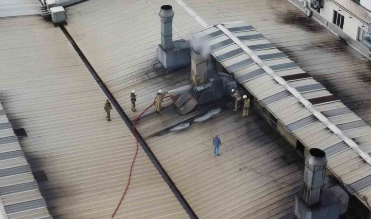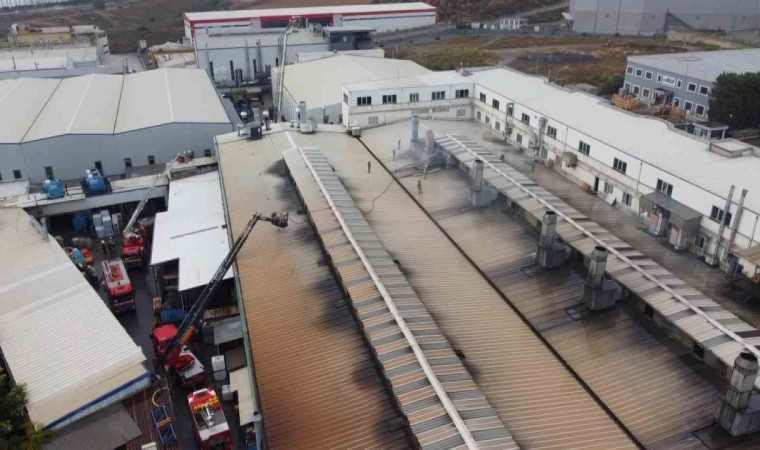 Yanan fabrika ve itfaiyenin çatıdaki müdahalesi dron ile görüntülendi. Öte yandan fabrikanın yandığı anlar cep telefonu kamerasına da yansıdı.