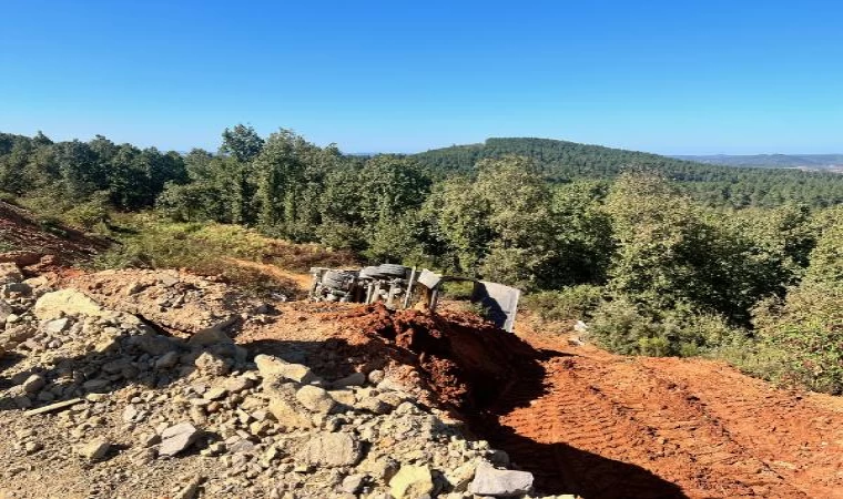 Tuzla’da hafriyat kamyonu şarampole yuvarlandı