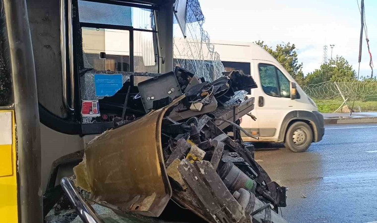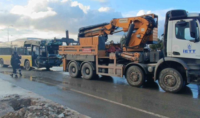 Tuzla’da İETT otobüsü, yolun kenarında park halindeki kamyona çarptı. İETT otobüsü kullanılamaz hale gelirken, 5 kişinin yaralandığı kaza anı güvenlik kamerasına yansıdı.