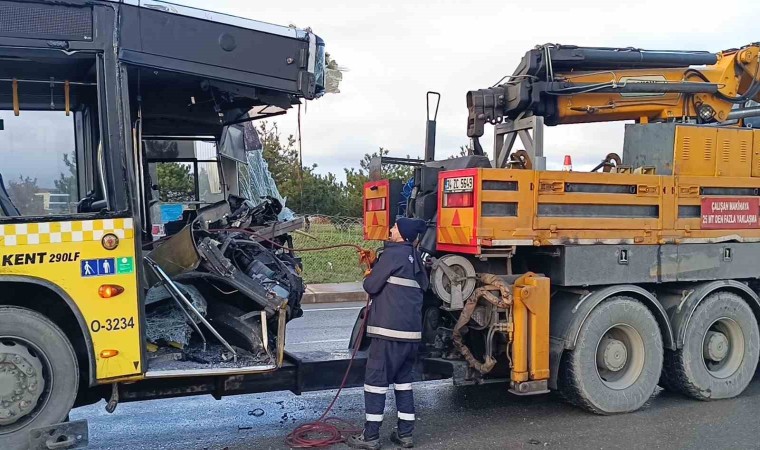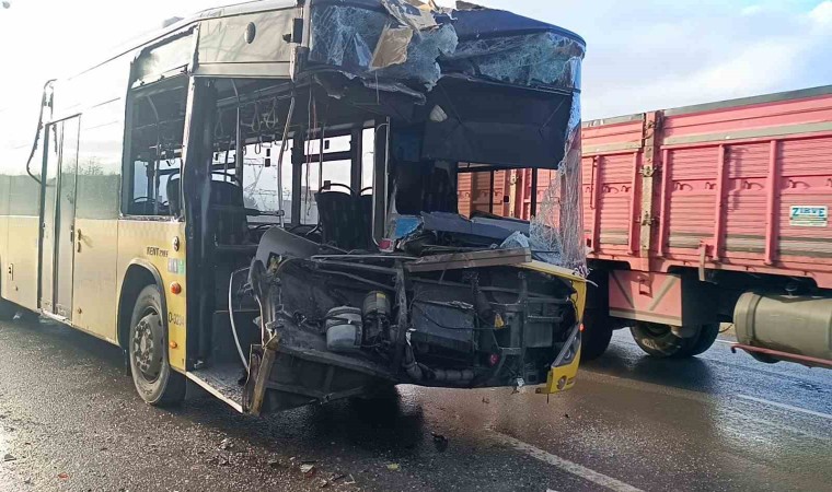 Kaza anı ise güvenlik kamerasına saniye saniye yansıdı. Görüntülerde seyir halinde olan İETT otobüsü, yol kenarındaki kamyona arkadan çarpıyor.