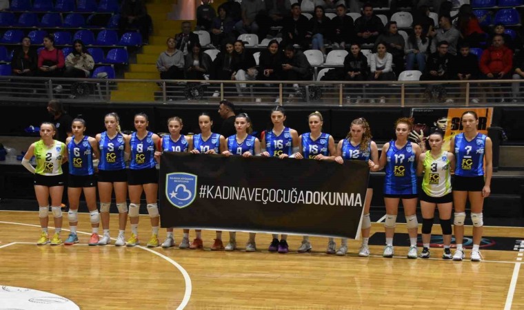 Balıkesir Kurtdereli Spor Salonu’nda yapılan 2. Lig 4. Grup 3. hafta mücadelesinde Balıkesir Büyükşehir, Yeşil Bayramiç’i 25-19, 25-13, 25-22 setlerle 3-0 mağlup etti. Balıkesir Büyükşehir Kadın Voleybol Takımı oyuncuları son zamanlarda kadınlara ve çocuklara yönelik şiddet olaylarına dikkat çekmek üzere parkeye ’Kadına ve çocuğa dokunma’ pankartı ile çıktı.