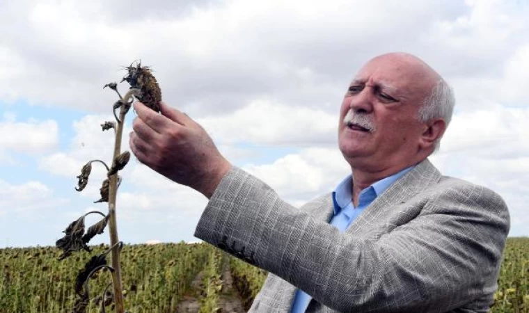 "Bu sene ciddi bir sorunla karşı karşıyayız. Bu bahçede de gördüğünüz gibi verimlilikte çok ciddi bir düşüş var. Bölgede çok ciddi bir kuraklık var. Çok büyük bir üretim düşmesi var. Muhakkak surette bu bölgedeki çiftçilerimize kuraklık yardımının yapılması lazım. Üretimimizi perişan eden bir durumla karşı karşıyayız. Tabi bunun sebepleri var. Bir tanesi, üreticilerimiz ekim zamanında aşırı yağışların olması neticesinde bu yaz ekimi geç yaptılar ve arkasından kuraklık geldi. Üretim fevkalade olumsuz etkilendi. Tabi bunun dışında bir firmanın reklam yaparak, bu bölgede tohum dağıtması, dağıttığı tohumların da maalesef çok kalitesiz olması bu tarlada da bu tohum vardı. Tabii ki üretimde büyük düşüşe sebebiyet verdi. Bizim üzüntümüz şu, bu firma yetkililerinin buraya gelip 'Arkadaşlar böyle bir tohum dağıttık sizi mağdur ettik. Üretiminizi engelledik. Tohumlarımız maalesef kalitesiz çıktı. Zararlarınızı karşılayacağız' demesi gerekirdi. Arkadaşlarımızın ifadesine göre böyle bir şey duymadık. Üreticiyi sahiplenmediğini duyduk. Bu firma yetkilisini uyarmak zorundayız. Üreticiyle bir araya gelin bu zararları en kısa sürede tanzim noktasına gidin ve üreticimizin bu sıkıntısını hep birlikte gidermeye çalışalım. Gördüğümüz kadarıyla bu yabancı menşeyli uluslararası firmanın büyük reklamlar yaparak dağıttığı tohumlar kalitesiz çıktı ve üreticiyi perişan etti. Ayçiçeği ekimi yapılan alanların 200 bin hektar civarında, ayçiçeği ekimi yapılan alanların yüzde 7'si bu bozuk tohumdan zarar görmüş. Bu da ciddi bir rakam. Bunun dışındaki zararlar sıcaklık ve kuraklıkla ilgili."