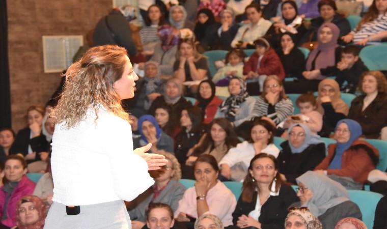 26 Mart Salı günü, son dönemde sosyal medyada çocuk gelişimi üzerine yaptığı eğitici paylaşımlarla Türkiye’nin en çok takip edilen isimlerinden biri haline gelen Yazar Dilek Cesur, Sabırlı Aileler Merhametli Çocuklar Yetiştirir isimli söyleşide Süleymanpaşalı annelerle bir araya geldi. Yahya Kemal Beyatlı Kültür Merkezi’nde gerçekleştirilen söyleşiye her yaştan kadın büyük ilgi gösterdi. 450 kişilik salon hıncahınç doldu, izleyiciler söyleşiyi merdivenler, sahne önü ve hatta sahne üzerinde oturarak ve çok sayıda izleyici de ayakta takip etti. Yaklaşık 70 dakika sahnede kalan Dilek Cesur, çocuk yetiştirirken farkında olmadan yapılan ve gelecekte ciddi etkiler doğurabilecek hatalardan bahsetti, küçük müdahalelerle her yaştaki çocuklarla nasıl doğru iletişim kurulabileceğine dair önemli ipuçları verdi. Söyleşinin ardından Süleymanpaşa Belediye Başkan Yardımcısı Nuray Aşan, Yazar Dilek Cesur’a çiçek takdim etti.