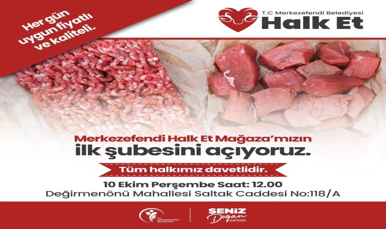 Tüm Denizlilileri açılışa davet eden Başkan Doğan, “2019’dan bu yana hemşehrilerimizle birlikte, sosyal belediyeciliğin en güzel örneklerini bir bir hayata geçiriyoruz. Halk Süt ve Halk Ekmek’ten sonra Merkezefendi Halk Et’i ilçemize kazandırarak, üç hizmeti aynı anda sunan Türkiye’deki ilk ilçe belediyesi olacağız. Hemşehrilerimiz sağlıklı, kaliteli ve uygun fiyatlı et ürünlerine her gün kolayca ulaşabilecek. Merkezefendi Halk Et Mağazamızın ilk şubesini 10 Ekim Perşembe günü saat 12.00’de, Değirmenönü Mahallesi Saltak Caddesi’nde açıyoruz. Tüm hemşehrilerimizi açılışımıza davet ediyorum” diye konuştu.