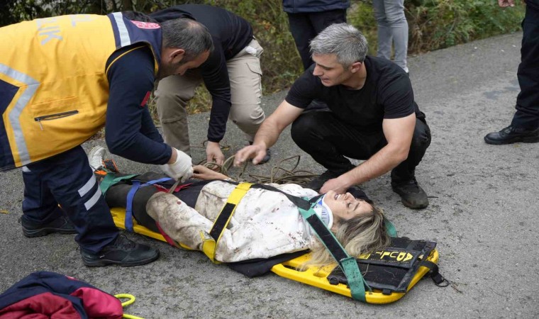 Araçta sıkışan sürücü Eren Gök ve Ebru Altınkaya ekiplerin çalışmasıyla bulundukları yerden çıkarıldı. 200 metrelik uçurumda mahsur kalan diğer 2 yaralıyı kurtarmak için ise çalışma başlatıldı. Zorlu arazi şartları nedeniyle güçlükle ilerleyen çalışmalar neticesinde yaralılara ulaşan ekipler, ilk müdahalenin yapılması ve güvenlik önlemlerinin alınmasının ardından yaralıları yaklaşık 1 saat süren çalışmayla bulundukları uçurumdan çıkarmayı başardı.