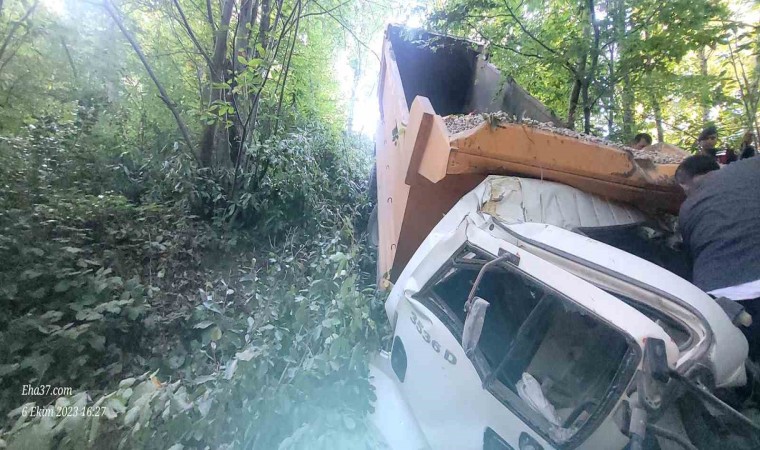 Edinilen bilgiye göre, Kastamonu-Cide karayolu üzerinde Şenpazar ilçesinden Cide ilçesine giden Feyyaz Cihan idaresindeki mıcır yüklü kamyon, Cide’ye bağlı Velioğlu köyü mevkiinde freni boşalması üzerine kaçış rampasından köy yoluna girdi. Köy yolunda virajı alamayan kamyon, yoldan çıkarak yaklaşık 7 metre yükseklikten uçuruma yuvarlandı. Ağaca takılı kalan ve kabin üzerinde duran kamyonda sürücü Feyyaz Cihan sıkıştı.
