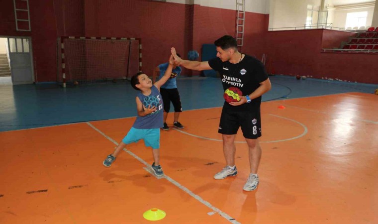 Amasya’nın Taşova ilçesinde hentbol takımında forma giyen üçüz kardeşler birlikte ter döküyor.