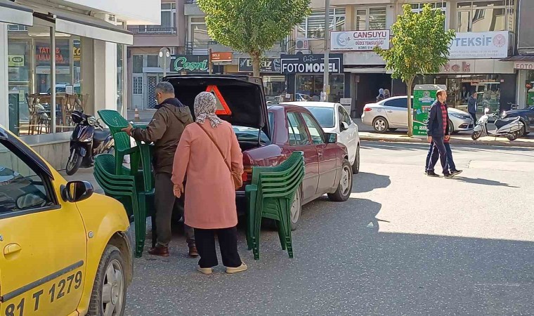 Düzce(İHA) – Düzce’de bir firmanın ucuz olarak getirdiği plastik sandalyeler, izdihama neden oldu. Ucuz sandalyeleri almak isteyenler birbirleriyle yarıştı. Bazı vatandaşlar otomobillerini içini hınca hınç sandalye ile doldururken sandalyelerin bulunduğu kamyondan sandalye kapmak isteyenler ise yoğunluk oluşturdu.