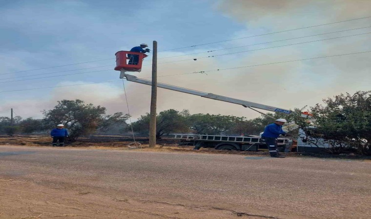 Çanakkale’nin Yağcılar köyünde yangından tahrip olan elektrik direkleri, bölgedeki yangının kontrol altına alınmasının ardından UEDAŞ ekipleri tarafından yenilenmeye başladı. UEDAŞ ekipleri, yangının daha da büyümemesi için çalışıyor.