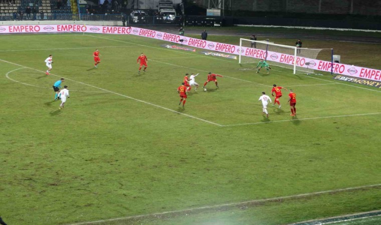 65. dakikada savunma arkasına sarkan Yunus Akgün kaleciyle karşı karşıya yaptığı vuruşta kaleci Nikic ayaklarıyla topu çeldi.