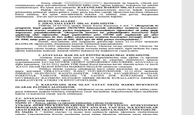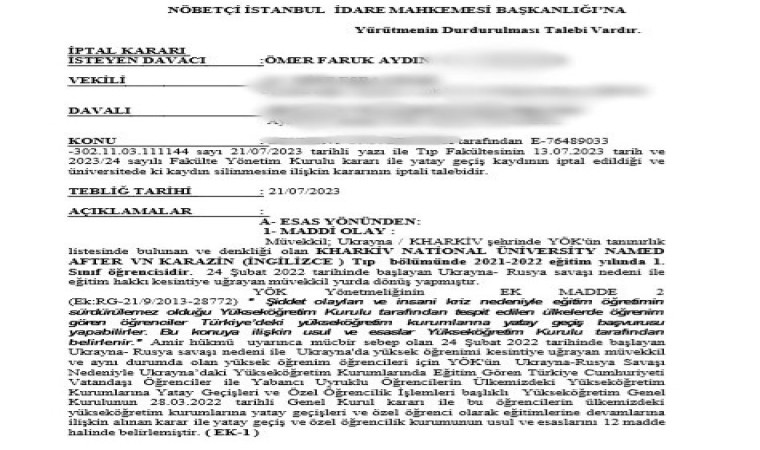 Ukrayna’da tıp okuyan ve savaş nedeniyle Türkiye’ye dönmek zorunda kalan, yatay geçiş yaptıkları özel üniversitede müfettiş raporu doğrultusunda kayıtları silinen Türk öğrenciler ortada kaldı. Doktorluk hayalleri yarım kalan öğrenciler, olayı mahkemeye taşıdı.