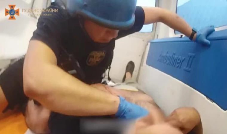 Ukrayna’da bombardımanda yaralanan kurtarma görevlisi hastaneye böyle götürüldü