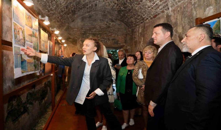 Ukrayna’nın farklı şehirlerinden bir grup kadın ressam tarafından hazırlanan “Ukraynalı Kadın Ressamların Gözünden Alanya” sergisi, Kızılkule yanındaki tarihi sarnıçta açıldı.