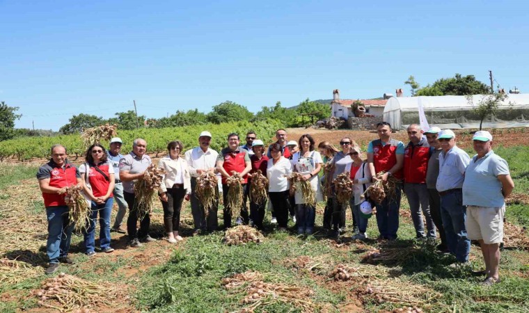 Muğla’nın Coğrafi işaret başvurusu yaptığı ürünler arasında yer alan Sarımsak hasadı, Ula Kızılağaç Mahallesinde üretici emekli öğretmen Osman Gülgün’ün tarlasında Tarım ve Orman İl Müdürü Barış Saylak’ın da katılımı ile yapıldı.