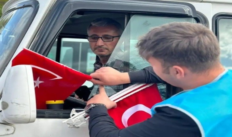 Daha sonra, vatandaşlara Türk bayrakları dağıtıldı.