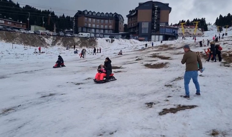 Yerli ve yabancı turistlerin yılbaşı tatili için uğrak noktası olan Uludağ’da, beklenen kar yağışı gerçekleşmedi. Meteoroloji yetkilileri, kar yağışının önümüzdeki günlerde gerçekleşeceği belirtilirken, yeni yıl kutlamaları için Uludağ zirvesine çıkanlar ise otellerin yapacağı etkinliklerle eğlenecek. Pistlerde, kayak yapmak için yeterli kar kalınlığı oluşmazken, kızakla değerlendirenler ise gönüllerince eğlendi.